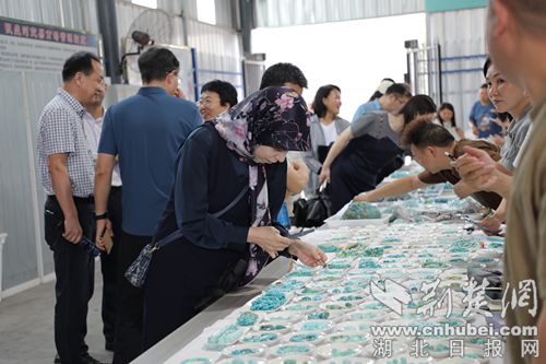 荊楚網(湖北日報網)訊(通訊員 陳芳 王銳)6月20日,參加中國珠寶玉石首飾行業協會綠松石產業發展工作委員會成立大會暨竹山綠松石供應鏈大會的專家學者、行業精英及嘉賓,到十堰市竹山縣實地考察綠松石產業發展現狀,縣領導閆岱林參加考察。