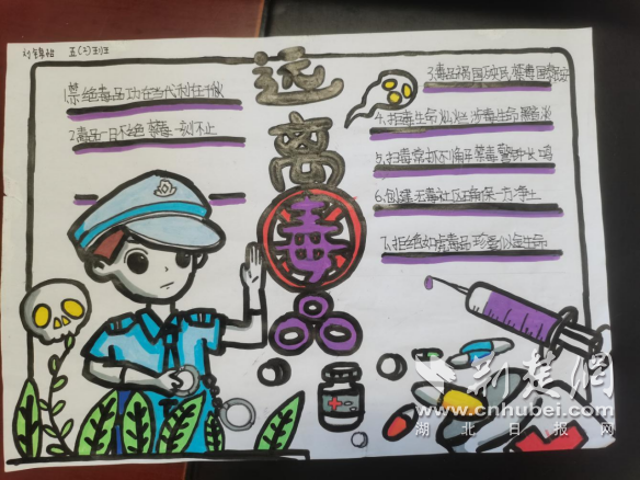 學生繪制的禁毒宣傳手抄報。通訊員供圖