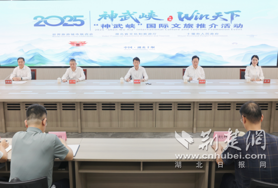 荊楚網(湖北日報網)訊(通訊員 劉晨鑫)7月8日上午,2025 “神武峽” 國際文旅推介活動新聞發布會在武當山特區召開。十堰市人民政府副市長、活動籌備工作專班副組長張捍聲介紹了活動整體情況和籌備進展,專班綜合協調組、宣傳推廣組相關負責人答記者問。