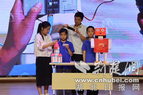 隨后,夏令營各班進行成果風采展示,通過趣味編程、3D打印、無人機和人工智能等豐富多彩的項目展示,再現了在夏令營的學習成果。人工智能項目《少年工程師》《會說話的機器人》《小智變裝秀》《我的神秘朋友》、3D打印項目《長征五號火箭》《戰斗機》《花瓶》、無人機項目《圖形飛行》《挑戰卡飛行》《智能跟隨》、趣味編程項目《游戲:彈一彈》《動畫作品:阿短的冒險》《回家吧,太空人》、物聯網項目《會唱歌的RBG彩燈》《智慧校園安全衛士》等項目展示,一場場科技的視覺盛宴充分展現了表演者們的青春活力和藝術才華,神奇的科技展示贏得了現場家長的陣陣掌聲和歡呼聲。