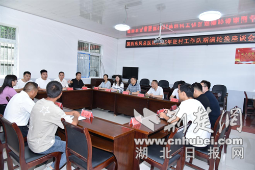 在座談會上,醫院黨群工作部部長李毅主持并宣讀醫院黨委關于駐村工作隊期滿輪換的決議,按照湖北省、十堰市鄉村振興工作統一部署,醫院黨委經審議決定,原駐村第一書記、隊長王月明期滿返院,由曾東祥、王勇、王少余組成新一屆駐村工作隊,其中曾東祥擔任第一書記、隊長。