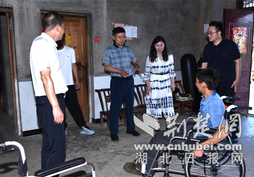 隨后,王翔宇帶隊來到監測戶龔太兵家中,親手將自掏腰包購買的“魚躍”牌輪椅交到他手中,并囑咐駐村工作隊要持續關注困難群眾,協助解決實際問題。龔太兵坐上嶄新的輪椅,十分高興,連聲道謝。