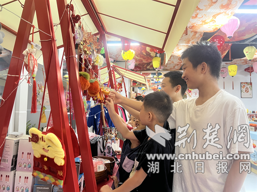 “家人們看這款‘十里紅妝書燈’!”大學生志愿者小林舉著手機穿梭在人群中,直播鏡頭掃過燈罩上精細的婚嫁場景,“這些圖案都是鄖西的實景,老北街,鵲橋,天河畔……”不遠處,幾位姑娘正輕撫著燈罩,眼中滿是驚喜,忍不住驚呼:“快看!書本展開時這些影子好像在講故事!”她們的歡聲笑語,引得周圍的人紛紛駐足觀看,夜市里熱鬧非凡。
