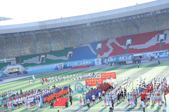 湖北省中學生組足球賽在鄖西縣文體中心開幕。 延洪鑫 攝