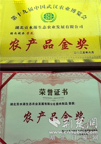 荊楚網(湖北日報網)訊(通訊員 陳昌榮 高鵬)8月5日,從湖北貢水源公司獲悉,在第十九屆中國武漢農業博覽會上,湖北貢水源生態農業發展公司憑借非遺工藝與現代科技融合研發的臘肉制品,從全國500余家企業中脫穎而出,榮獲本屆農博會金獎。