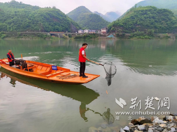 張從業在漢江流域打撈漂浮物。通訊員供圖