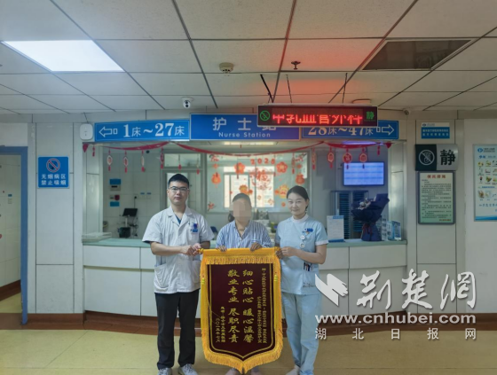 荊楚網(湖北日報網)訊(通訊員 馬婷婷)近日,十堰市人民醫院甲乳外科一病區汪令成主任帶領的醫護團隊辦公室里,接連收到三面鮮紅的錦旗。錦旗上“牛逼靠譜,細心周到”“細心貼心暖心溫馨,敬業專業盡職盡責”“醫德高尚情暖人心,醫術精湛盡職盡責”等鎏金大字,不僅是患者對診療服務的高度認可,更凝聚著醫患之間跨越病痛的信任與溫情,也為團隊中黃煒副主任、管床醫生王巍與宋成強、護理負責人敖瑩及責任護士陳小麗及孫詩碧等每一位成員的付出,寫下了最真摯的注腳。