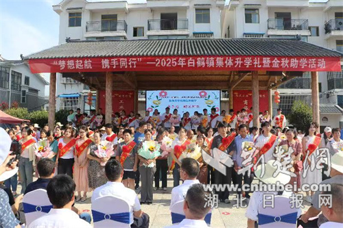 八月果飄香,金榜題名時。當日,“夢想起航 攜手同行”——2025年白鶴鎮集體升學禮暨金秋助學活動在白鶴鎮伏溪村文化廣場舉行,慶祝92名準大學生“金榜題名”,學生、家長代表、教師代表及企業家參加活動。