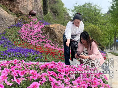 鄖西縣口袋公園各色花卉競相綻放。孟瑩 攝