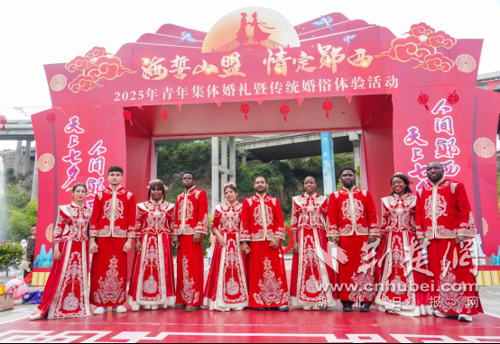 據(jù)了解,本次婚禮的77對新人,既有來自北京、重慶、武漢、宜昌、襄陽等天南海北的國內(nèi)青年,亦有來自孟加拉國、摩洛哥、坦桑尼亞、馬拉維、喀麥隆等國的國際友人。新人身份涵蓋扎根鄉(xiāng)村的振興者、攻堅克難的科研人員、教書育人的教師、守護平安的衛(wèi)士、返鄉(xiāng)創(chuàng)業(yè)的青年代表及在華留學的外國友人。