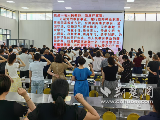 緊接著,會議進入了莊嚴的師德宣誓環節。在領誓人樊行兵同志的帶領下,全體教師右手舉拳,面向誓詞,作出了恪守師德、為人師表的鄭重承諾,彰顯了紅塔鎮教師隊伍堅守教育初心的堅定決心。