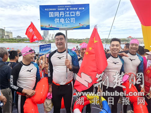 荊楚網(湖北日報網)訊(通訊員 劉景麗 楊豐源)8月31日上午8時30分,湖北十堰丹江口大壩下游的漢江水域熱鬧非凡,彩旗飄揚。在莊嚴的國歌聲中,丹江口市“均州碼頭”杯2025“夏日冬泳”渡江比賽正式拉開帷幕。國網丹江口市供電公司選派的12名電力“守井人”組成代表隊,與來自全國各地的1551名游泳愛好者同場競技,在漢江中展現了國家電網人的風采。