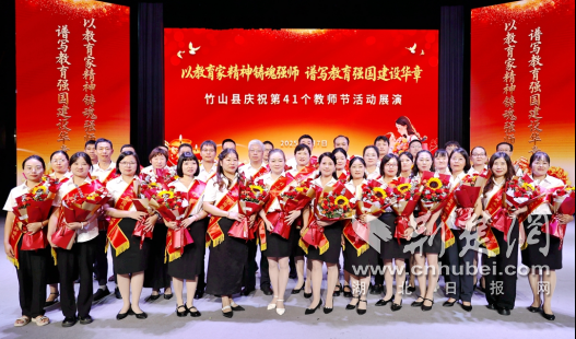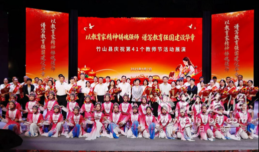 荊楚網(湖北日報網)訊(通訊員 許海濤 柏袁浩 閔欣)9月7日,十堰市竹山縣秦巴文化藝術中心內歌聲激昂、掌聲陣陣,竹山縣以“以教育家精神鑄魄強師,譜寫教育強國建設華章”為主題,舉辦慶祝第41個教師節展演活動,用精彩的文藝演出致敬全縣教育工作者。
