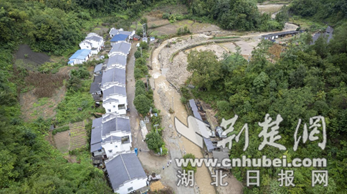 鄖陽區(qū)葉大鄉(xiāng)在遭受強降雨后,村莊旁河道水位上漲,道路損壞嚴重。通訊員 余冰潔 攝