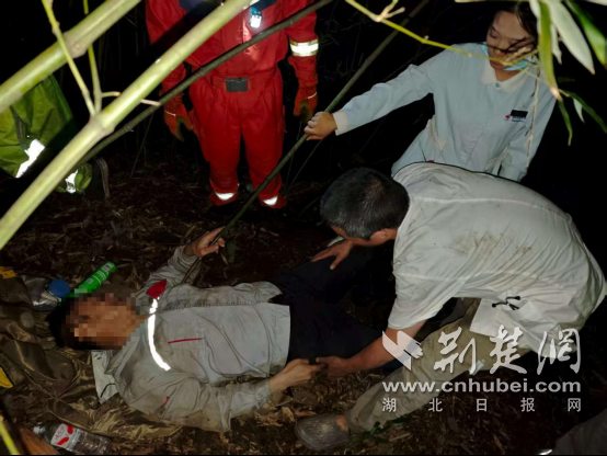 當晚7時許,國藥東風總醫院急診科醫生劉全和護士艾瑩、吳文敏立即出發,到達牛頭山頂后,消防隊員已在此等候,溝通得知傷者在牛頭山森林深處的一處斷崖下,但無法確定具體位置和路程。
