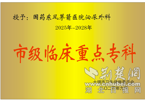 荊楚網(湖北日報網)訊(通訊員 喻欽 田瑞華)近日,國藥東風茅箭醫院泌尿外科榮獲2025年度十堰市“市級臨床重點專科”稱號,標志著科室在醫療技術、學科建設與服務品質上實現突破性發展,也彰顯了醫院在區域泌尿外科領域的學術地位。
