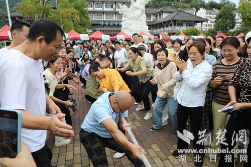 啟動儀式后,農事趣味運動會接力開賽。民間拔河爭霸、玉米投筐大比拼、扁擔挑糧接力等等趣味比賽妙趣橫生,吸引全縣17個鄉鎮隊伍踴躍參與,現場充滿了輕松愉快的節日氣氛。