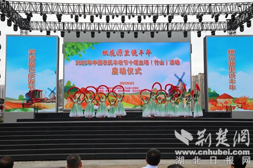 啟動儀式在激昂的鑼鼓聲中拉開帷幕。大屏幕上,竹山縣17個鄉鎮的特色“曬秋”場景依次呈現,勾勒出五谷豐登的豐收畫卷。舞蹈《幸福中國一起走》以優美舞姿,生動展現了“農業強、農村美、農民富”的生動圖景。