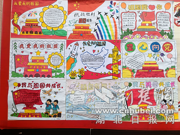活動(dòng)自啟動(dòng)以來(lái),各班級(jí)師生熱情高漲、通力協(xié)作:有的班級(jí)化身“小小國(guó)畫家”,用細(xì)膩筆觸勾勒天安門、長(zhǎng)城的雄偉身姿,金黃的稻浪、鮮艷的國(guó)旗在畫中交織,盡顯“山河錦繡”之美;有的班級(jí)聚焦“紅色記憶”,通過(guò)剪紙、貼畫再現(xiàn)小英雄雨來(lái)、狼牙山五壯士的故事,圖文并茂的設(shè)計(jì)讓紅色精神浸潤(rùn)童心;還有的班級(jí)緊扣“科技強(qiáng)國(guó)”主題,將神舟飛船、高鐵、港珠澳大橋等元素搬上墻面,用絢爛色彩展現(xiàn)祖國(guó)的發(fā)展奇跡,更有班級(jí)融入家鄉(xiāng)變遷圖景,用老照片與新畫作對(duì)比,訴說(shuō)身邊的“家國(guó)故事”。
