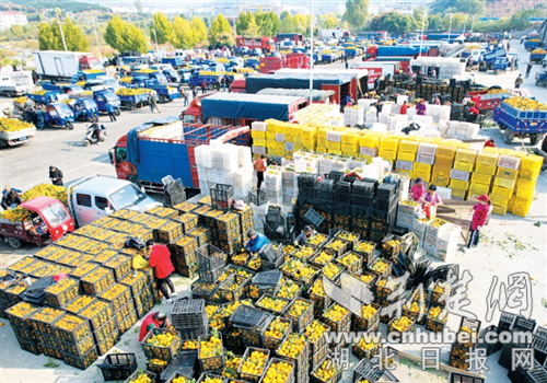 荊楚網(湖北日報網)訊(通訊員 程光照 劉春燕 曹凱)金秋十月,丹江口市30萬畝橘園碩果盈枝,習家店庫區柑橘交易市場內車輛絡繹不絕,果農們忙著分揀裝箱,打蠟廠機器不停運轉,一派豐收忙碌景象。