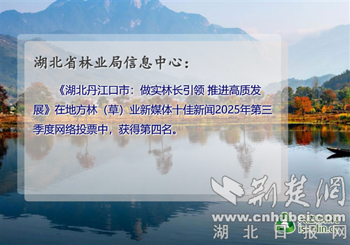 荊楚網(湖北日報網)訊(通訊員 熊亞菲 賈維峰 李鎮海)10月21日,從省林業局信息中心獲悉,在2025年全國“綠水青山看中國、地方林(草)業新媒體十佳新聞”第三季度評選中,丹江口市林業局撰寫的《做實林業引領 推進高質發展》榮獲第四名的佳績。