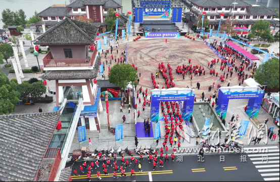 健步走出發,風景中邁出健康步伐。開幕式后,健步走活動率先接力。上午9時,發令槍響,身著統一紅色運動T恤的數百名健身愛好者從女媧廣場出發,隊伍宛如一條流動的紅色絲帶,穿行于桃花源街區與桃花灣游步道。堵河湖光與街區古韻相映成趣,大家結伴而行,步履矯健,歡聲笑語不斷。來自蓮花社區的黃湖蓮興奮地說:“我平時都非常喜歡鍛煉,今天有這樣的一個機會,可以跟大家一起健步走,我非常開心,我一定會把這樣的好習慣繼續保持下去,繼續鍛煉。”最終,陳晨、龔世平、張家友分獲男子組前三名,彭艷、袁圓、徐愛梅分獲女子組前三名。