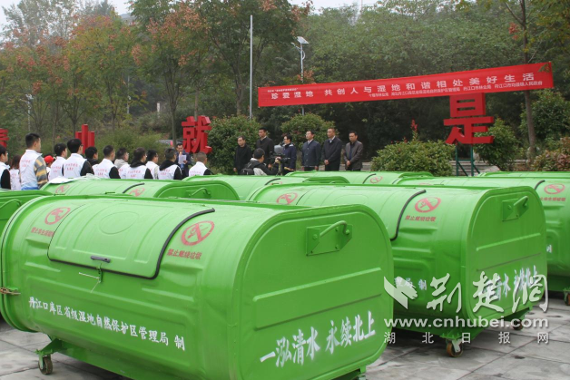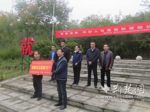 活動(dòng)現(xiàn)場(chǎng),丹江口庫區(qū)省級(jí)濕地自然保護(hù)區(qū)管理局向均縣鎮(zhèn)政府移交了定制勾臂式垃圾箱16個(gè),用于均縣鎮(zhèn)收集濕地保護(hù)區(qū)內(nèi)村鎮(zhèn)日常垃圾,解決轄區(qū)居民垃圾“收集難、轉(zhuǎn)運(yùn)慢”問題,減少人為污染對(duì)濕地生態(tài)系統(tǒng)的干擾。