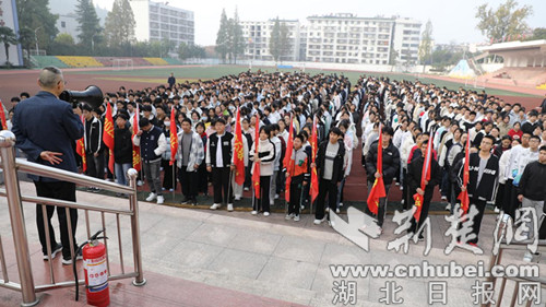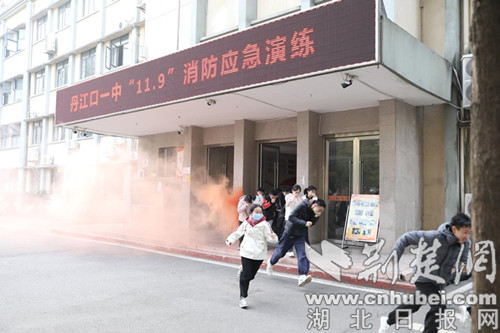 荊楚網(wǎng)(湖北日報(bào)網(wǎng))訊(通訊員 張國富、劉遵群、萇曉昱)11月4日上午,隨著一陣急促的警報(bào)聲劃破長空,丹江口一中“11·9消防日”消防安全逃生演練拉開帷幕。學(xué)校高一年級1000余名師生彎腰捂鼻,僅用時2分48秒便全部安全撤離至操場,上演了一場“火場”逃生的實(shí)戰(zhàn)教學(xué)。