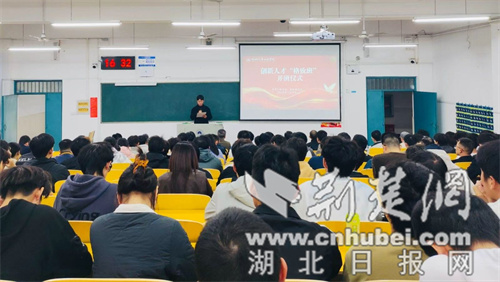 荊楚網(湖北日報網)訊(通訊員 李萌 張朋剛)11月3日下午,湖北汽車工業學院光電工程學院、新能源學院創新人才“格致班”開班儀式在2101教室順利舉行。學校督導組組長毛高波教授、學院黨委書記張默、副院長張傳坤、副院長馬亞楠、黨委副書記張朋剛、院長助理曹名磊、八個研究團隊全體專任教師及112名首屆格致班學生參加開班儀式。
