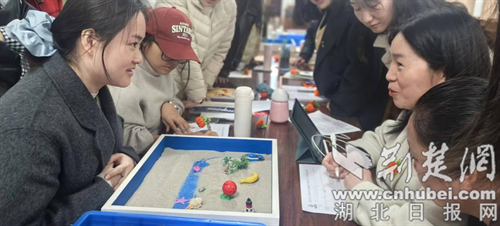 接著,以沙盤療法作為培訓的核心,圍繞“理論 + 實操” 展開。理論講解環(huán)節(jié),陳紅老師結合實踐經驗,從沙盤療法起源、多拉?卡爾夫沙盤游戲理念切入,借案例解讀其在兒童疏導、青少年情緒調節(jié)等場景的應用,讓教師理解沙盤是 “無聲語言”,需專業(yè)解讀。實操環(huán)節(jié),教師分組扮演“來訪者”與“咨詢師”,沉浸式體驗創(chuàng)作與咨詢。針對信任建立、沉默引導等問題精準點撥,助教師掌握核心技巧。后續(xù)專題分享中,專家結合學生特點,提供沙盤課程設計、心理評估、干預方案等落地策略,明晰應用路徑。