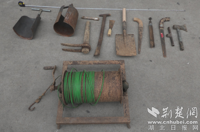 警方介紹,在這個盜墓團伙中,各個盜墓分子分工明確,河北唐山人張某負責出資,給團伙在隨州租了一套房子供團伙居住,負責食宿費用,購買盜墓的洛陽鏟、探針、探頭、絞盤等工具。雖說工具不是很先進,但配備比較齊全。內蒙古赤峰人殷某曾經在當地的探礦隊上過班,具有一定的地理勘探知識,在找墓的過程中充當“技術員”。同樣來自內蒙古赤峰的賈某和王某某懂得挖井技術,則負責挖掘盜洞。兩人挖掘技術高超,挖了一個約3米深的豎洞,又橫向挖了一個兩米高的橫洞。一般橫洞容易塌方,他們卻保持完好,由此可見挖掘技術高超。另外賈某有一定的文物知識,愛好收藏,有收藏證書。