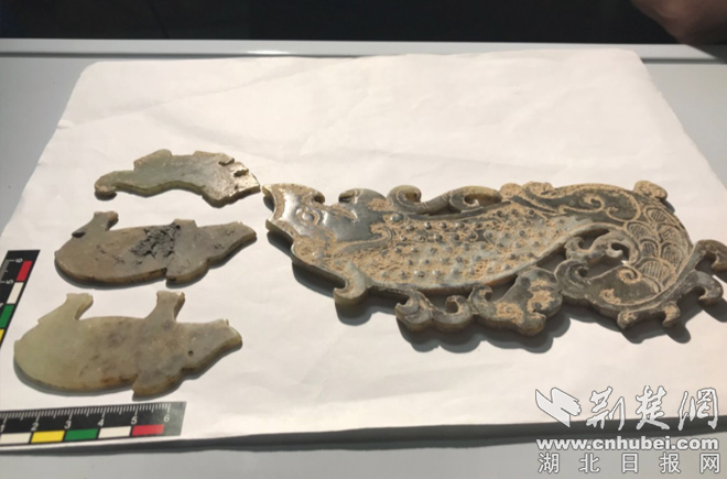 2018年12月24日晚,辦案民警開展收網行動將6名犯罪嫌疑人全部抓獲,搜獲鳳形玉佩一個、玉豬一對、玉龍一個(疑似漢朝文物)。