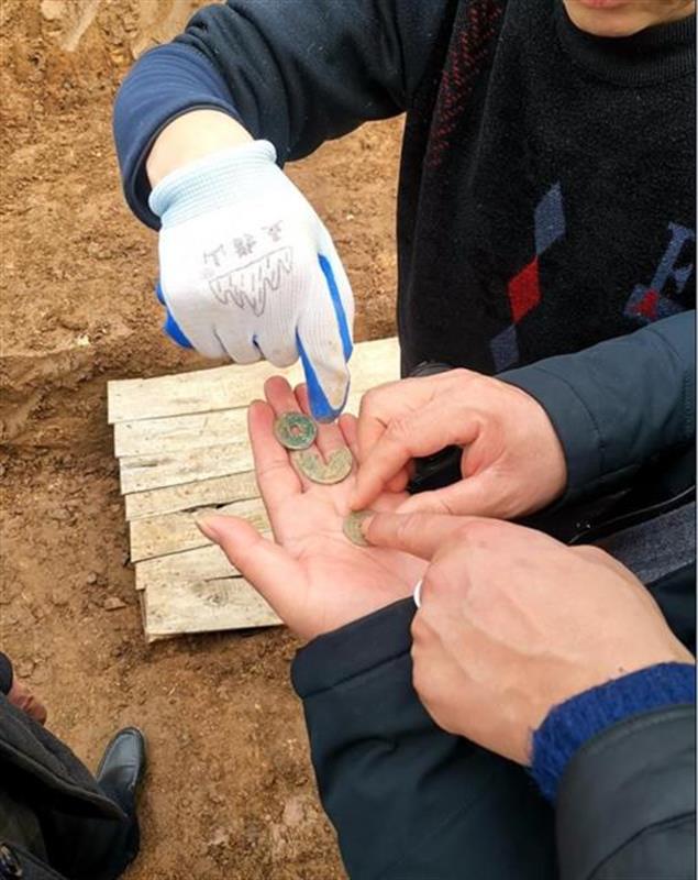這些古幣埋在一個圓口形的陶罐中,由于挖掘機作業時導致罐體上半部分已破碎,大量古幣散露出來。該市博物館館長張國紅介紹,初步清理這些散落的古幣發現,最早是唐朝開元通寶,最晚是太平通寶,最多的是北宋時期的崇寧通寶。