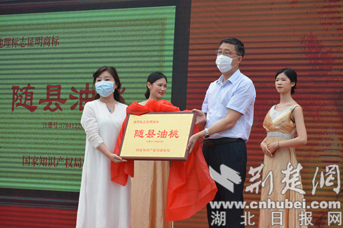 “隨縣油桃”地理標志商標揭牌現場。通訊員供圖