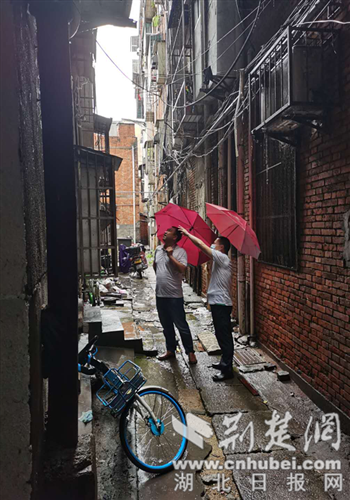 荊楚網客戶端—荊楚網消息(通訊員 呂?。?月27日夜間至28日白天,隨州市連降暴雨,導致城區老樓危樓不同程度受損,存在一定安全隱患。6月28日上午,隨州市房屋安全鑒定和白蟻防治研究所工作人員前往隨州東城辦事處帶涢閣社區添福廟巷1號樓、漢東樓社區原老自行車廠等城區老樓危樓現場開展房屋安全排查工作。