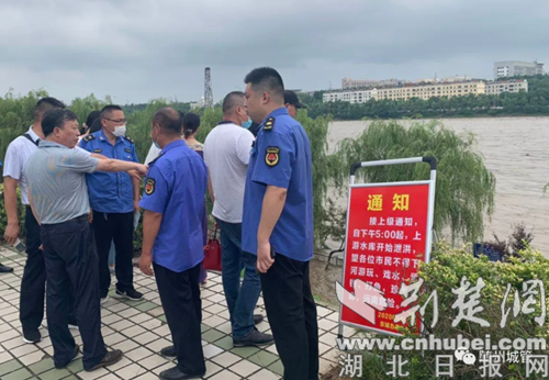 當(dāng)日,隨州市區(qū)兩級應(yīng)急管理部門研判,上游洪水將從涢水河、?水河南郊段通過,洪峰過境會帶來一定的安全隱患。為了保障人民群眾的生命財產(chǎn)安全,按照隨州市曾都區(qū)政府的統(tǒng)一部署,隨州市城管執(zhí)法委所屬五個執(zhí)法大隊會同曾都區(qū)城管局,出動120余名執(zhí)法管理隊員,對白云湖“一湖兩岸”重點地段、親水平臺和臺階踏步,以及府河大橋、舜井大橋、?水一橋、涢水二橋周邊區(qū)域進行重點布控值守。