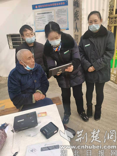 了解到這一情況,大堂經理告訴他,郵儲銀行可以為其提供上門服務,辦理預約上門登記后,第二天兩名工作人員便帶齊設備和資料,來到隨州市中心醫院現場為其辦理社??せ顦I務。
