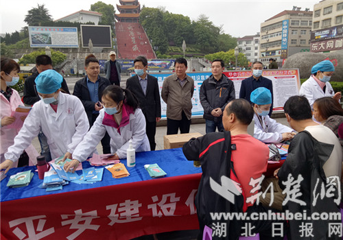 荊楚網(湖北日報網)訊(通訊員 劉小斌)4月22日,廣水市衛生健康局、印臺醫院在印臺廣場聯合開展以“平安建設宣傳”為主題的義診咨詢活動,向廣大群眾提供健康咨詢義診服務。