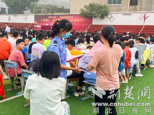 荊楚網(湖北日報網)訊(通訊員佘敏)為增強學生法治觀念,提高學生防范意識,加強自我保護能力,預防和減少青少年犯罪,營造安全文明的讀書育人環(huán)境。9月10日,隨州市司法局聯(lián)合西城派出所在隨州市外國語學校開展“關愛明天、法治護航、遠離校園暴力、防電詐”安全宣講進校園活動,全校1400余名師生參加。