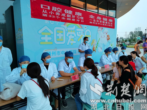 荊楚網(湖北日報網)訊(通訊員曾凱、徐梅)9月20日是第33個全國愛牙日,今年全國愛牙日的活動主題是“口腔健康,全身健康”,旨在普及口腔衛生保健知識,推動全社會關注口腔衛生及健康。9月17日下午,隨州市中心醫院組織專家團隊在吾悅廣場進行口腔衛生宣教及義診活動。