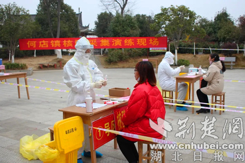 荊楚網(湖北日報網)訊(通訊員李培秀、夏君)12月15日,隨州市曾都區何店鎮疫情防控指揮部開展全員核酸采樣現場演練。
