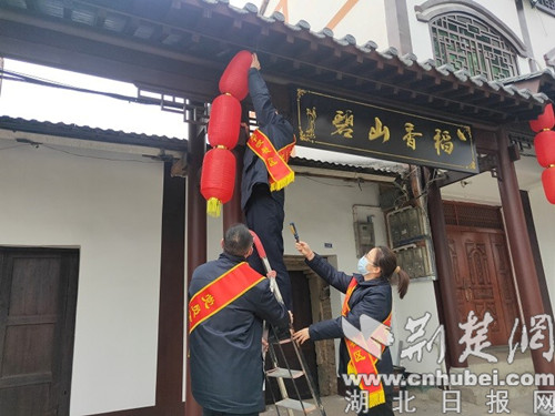 當日上午,襄陽公司煙店黨小組成員步行來到煙店鎮政府,與相約的鎮政府工作人員碰頭后,一起來到了煙店村的街道上,開展今天的主題活動——大紅燈籠高高掛。