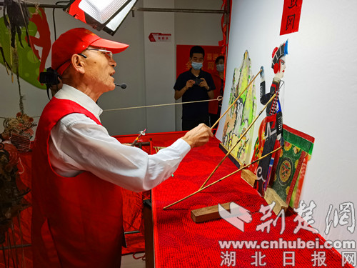 嚴(yán)開友老人正在表演皮影戲。通訊員供圖