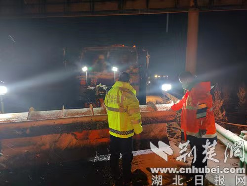 據悉,為有效應對惡劣天氣對司乘的出行影響,確保惡劣天氣下轄區道路交通安全、有序暢通。湖北交投襄陽高速第一綜合巡檢辦以雪為令,迅速啟動防凍防滑應急預案,全力迎戰,通過加大對重點及危險路段的綜合巡查力度、巡查頻次,加強易積雪結冰路段、長上下坡危險路段、橋梁及交通事故多發路段的除冰除雪和防水、排水工作,在易積雪結冰路段及事故多發路段備足應急人員、物資、機械、車輛、設備等措施,高效應對雨雪惡劣天氣。