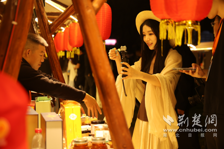 網(wǎng)絡(luò)達(dá)人打卡創(chuàng)意集市上的隨州特產(chǎn)。 記者 郭炫龍 攝