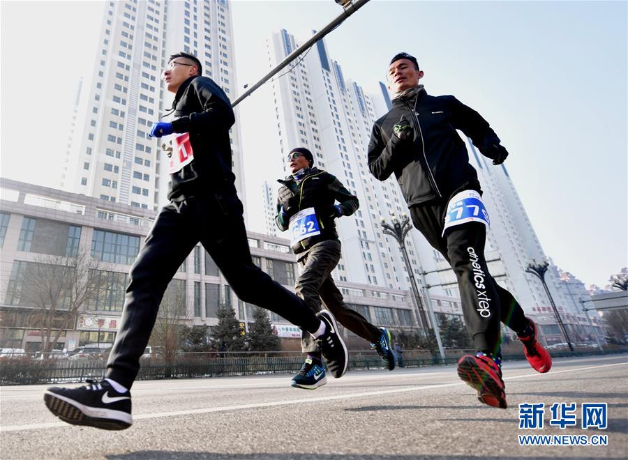 ↑1月1日,參賽選手在比賽中奔跑。高原古城青海省西寧市迎來(lái)了第46屆元旦環(huán)城賽,近1萬(wàn)人報(bào)名參賽,其中年齡最大的75歲,最小的10歲。 2019年新年伊始,全國(guó)各地的健身愛(ài)好者不畏冬日嚴(yán)寒,以豐富多樣的室外運(yùn)動(dòng)辭舊迎新。 新華社發(fā)(張龍攝)