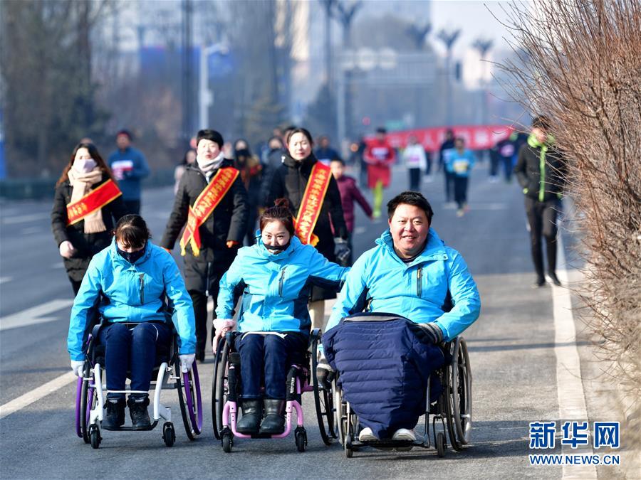 ↑1月1日,輪椅選手在比賽中。高原古城青海省西寧市迎來(lái)了第46屆元旦環(huán)城賽,近1萬(wàn)人報(bào)名參賽,其中年齡最大的75歲,最小的10歲。 2019年新年伊始,全國(guó)各地的健身愛(ài)好者不畏冬日嚴(yán)寒,以豐富多樣的室外運(yùn)動(dòng)辭舊迎新。 新華社發(fā)(張龍攝)