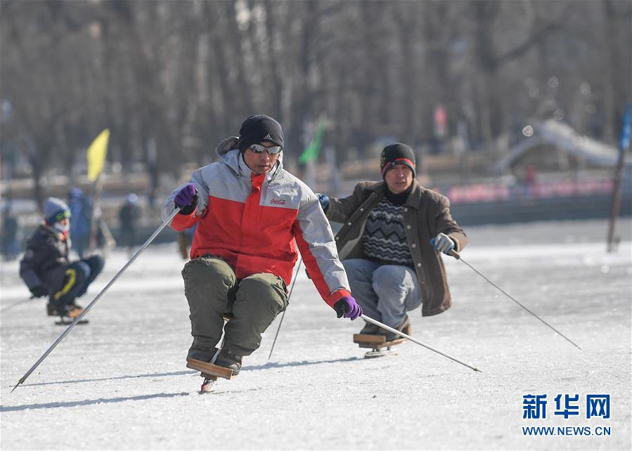 ↑1月1日,在北京玉淵潭公園,幾名游客在滑冰車。 2019年新年伊始,全國(guó)各地的健身愛(ài)好者不畏冬日嚴(yán)寒,以豐富多樣的室外運(yùn)動(dòng)辭舊迎新。 新華社發(fā)(雒圓攝)