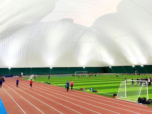 2017年10月,內蒙古醫科大學給出了答案——一座嶄新的氣膜足球訓練中心正式落成金山校區。據了解,這一氣膜結構的訓練中心由北京約頓氣膜承建,占地兩萬平米,是目前國內最大的氣膜體育綜合運動體。從功能來看,氣膜館如同“百寶箱”,涵蓋一片標準足球場地、四百米跑道及看臺、網球、羽毛球、乒乓球、跳遠、跳高、鉛球專用場地。氣膜館最大高度達到36米,空間完全滿足各類大型運動的需要。更重要的是,這一在規模和體量上承載著內蒙古自治區雙重“地標級”標準和意義的體育場館意味著,內蒙足球告別“冬歇期”的機會來到了。