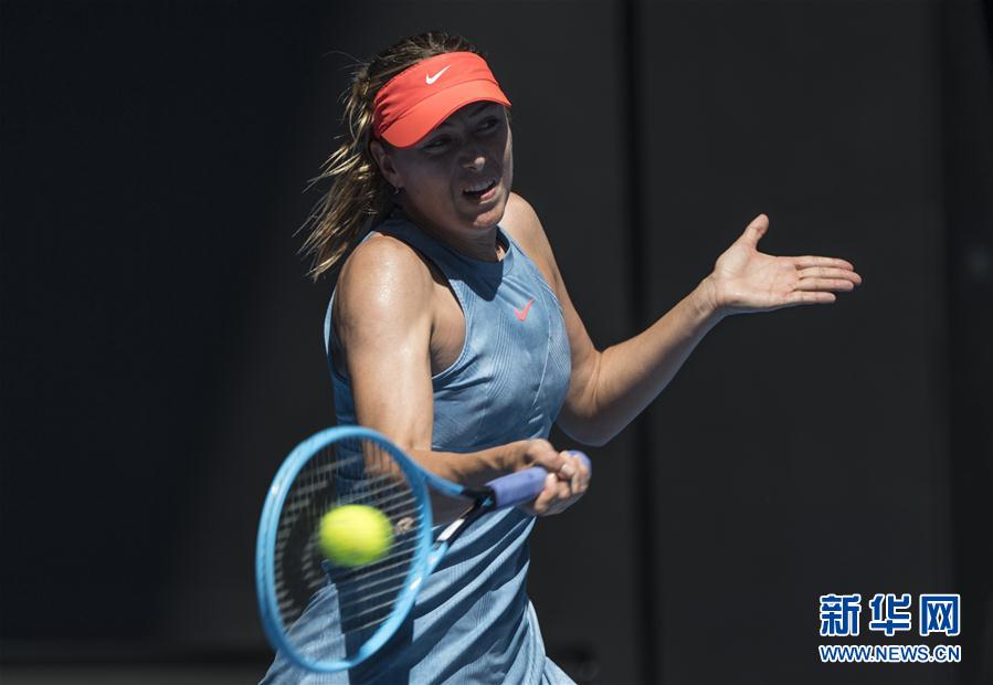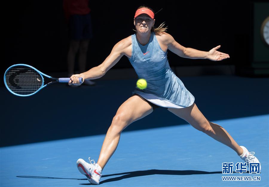 1月14日,俄羅斯選手莎拉波娃在比賽中回球。 當日,在2019年澳大利亞網球公開賽女子單打首輪比賽中,俄羅斯選手莎拉波娃以2比0戰勝英國選手達特,順利晉級。 新華社記者呂小煒攝